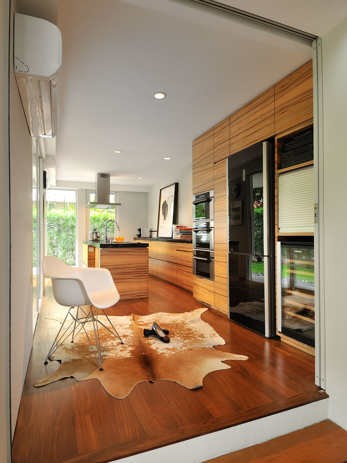 The interior living and dining was design to form a single entity so as to allow our client’s guests to mingle when entertaining. The elevated kitchen opens to the garden which overlooks to the living and dining and acts as a point when entertaining.